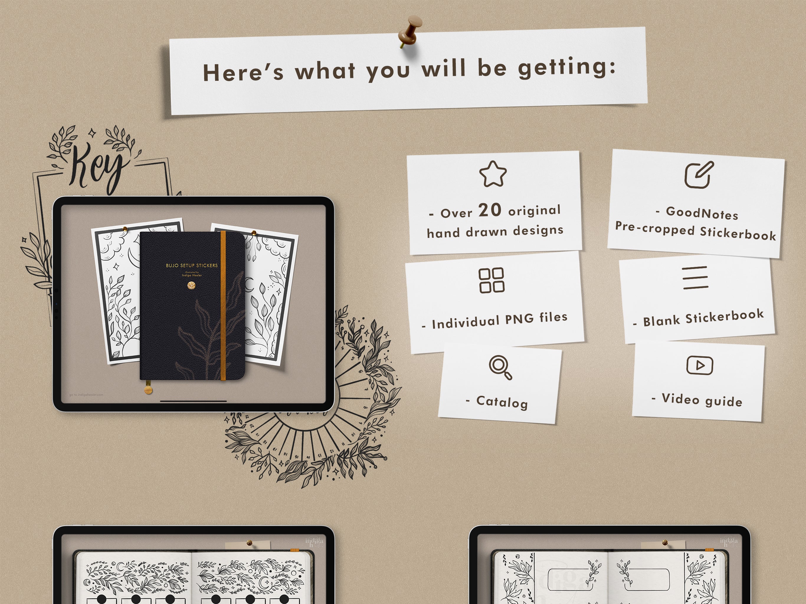 Hand-drawn illustrations for making your bullet journal setup quick and beautiful.