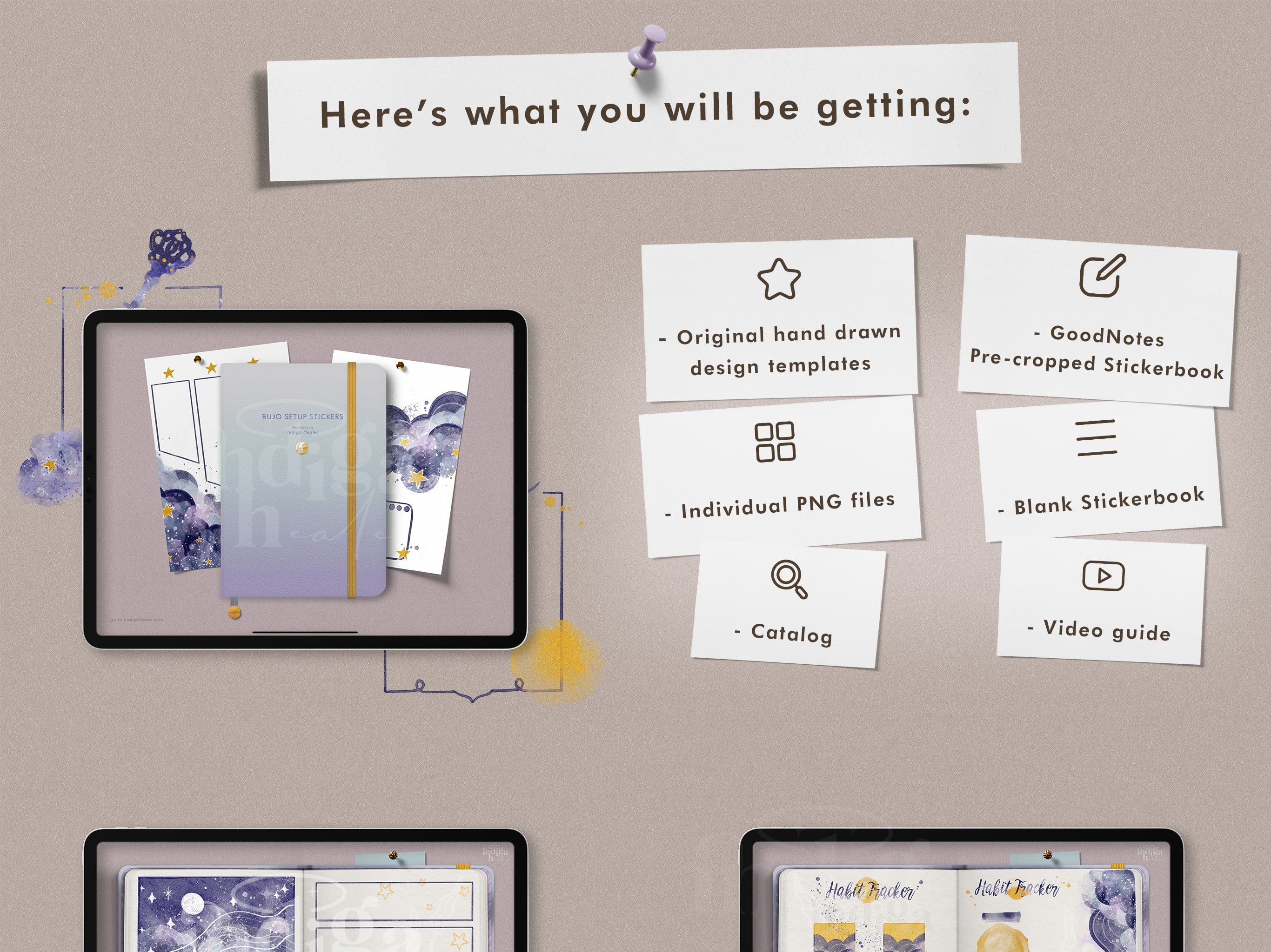 Hand-drawn illustrations for making your bullet journal setup quick and beautiful.