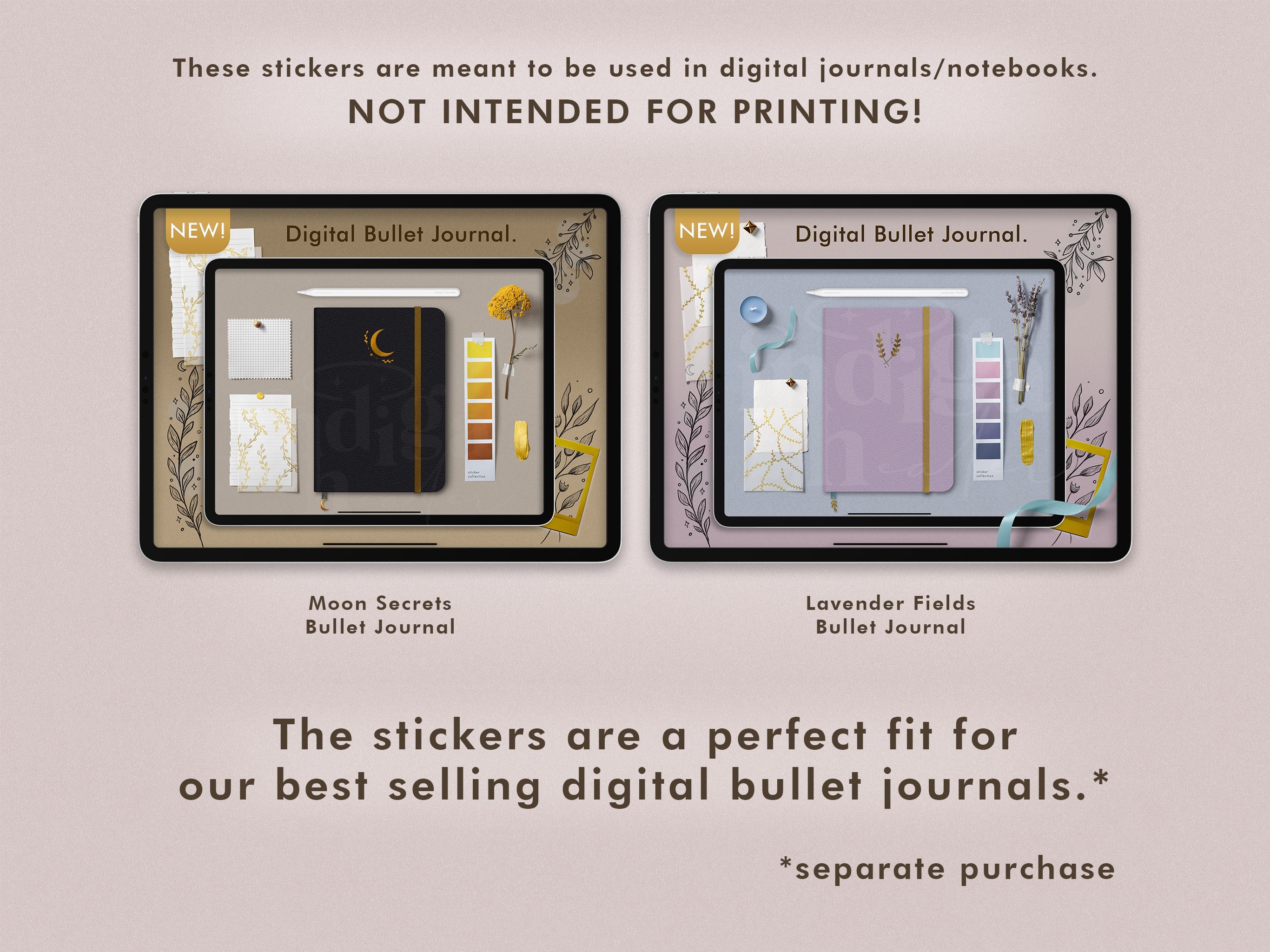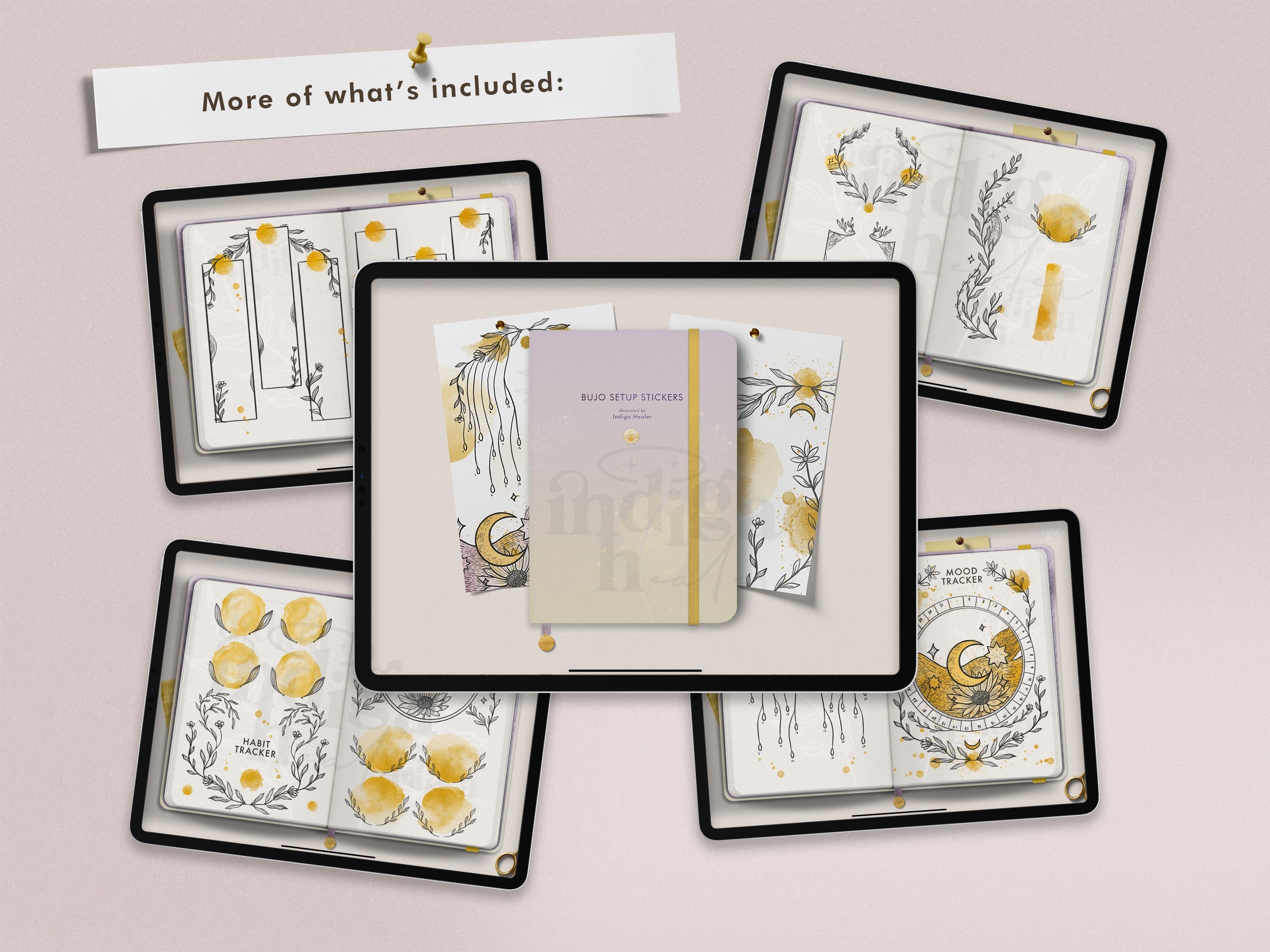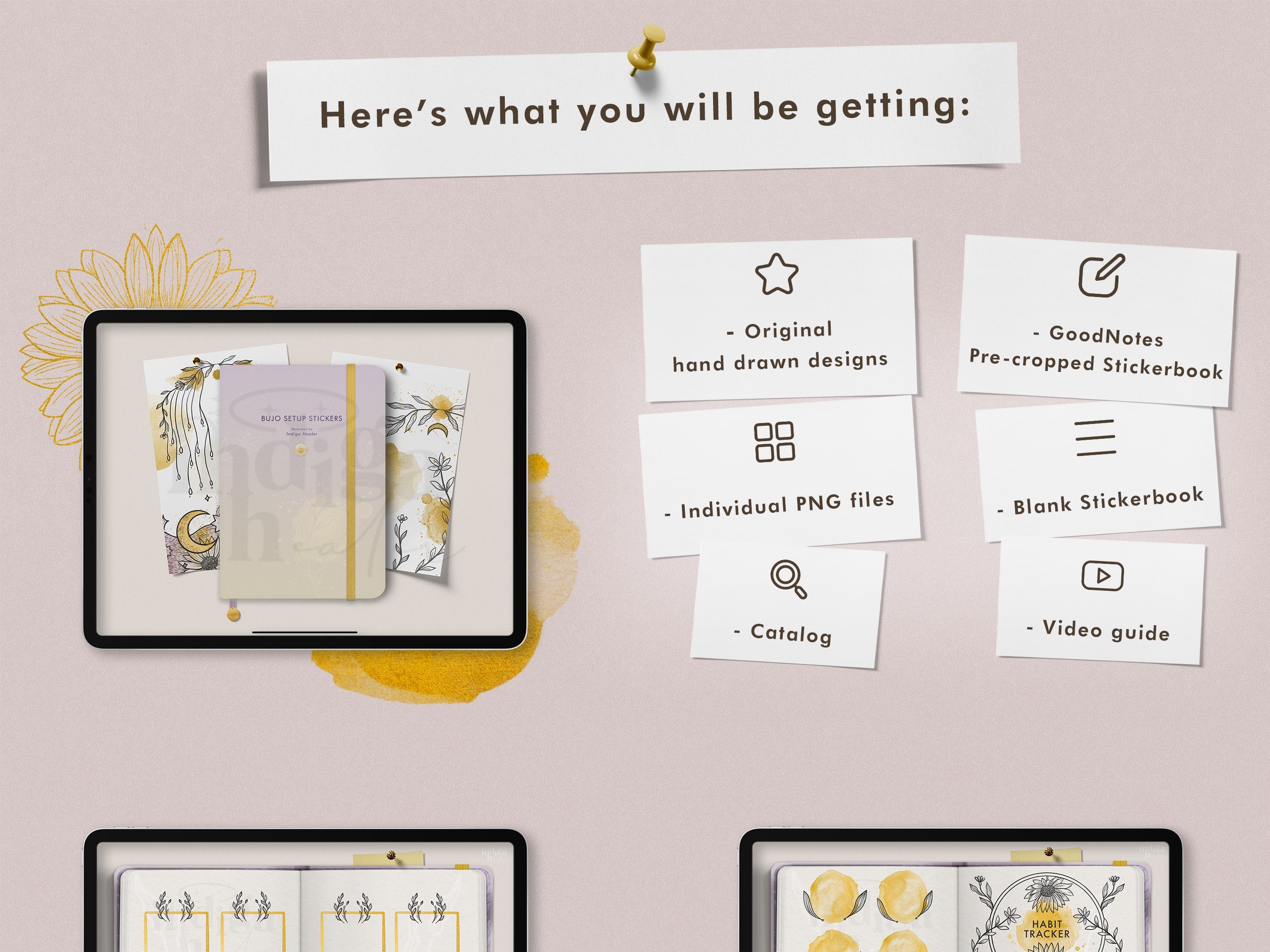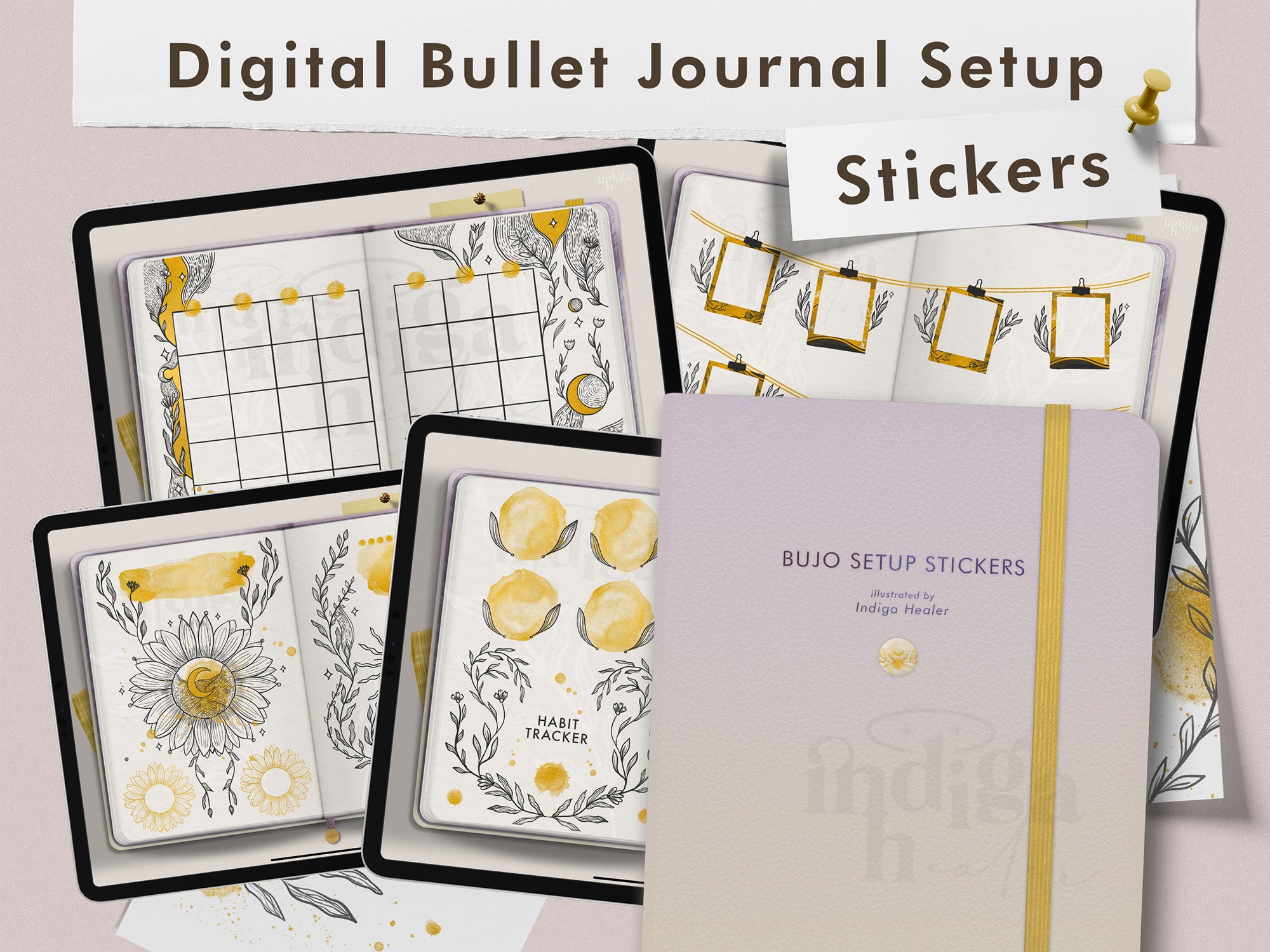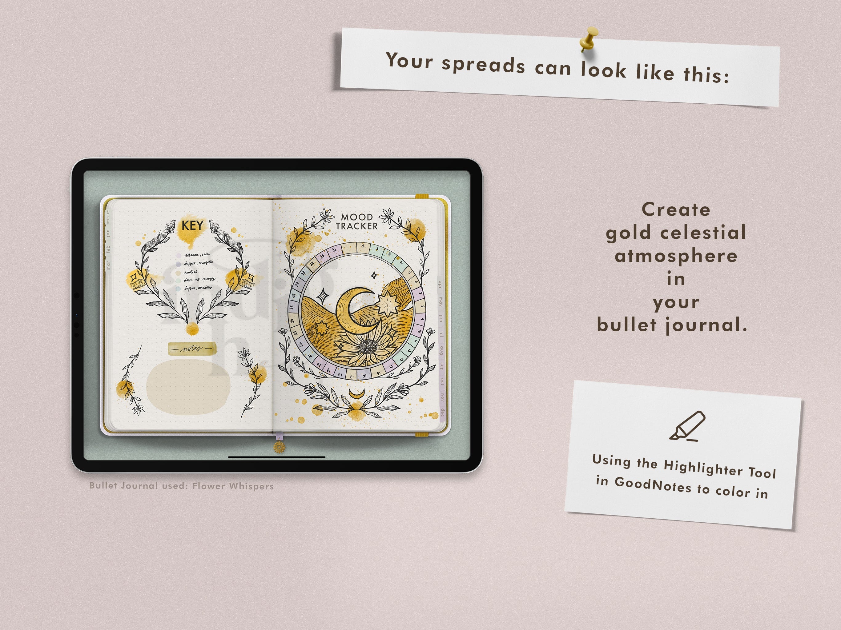 Gold Celestial Digital Bullet Journal Setup Stickers