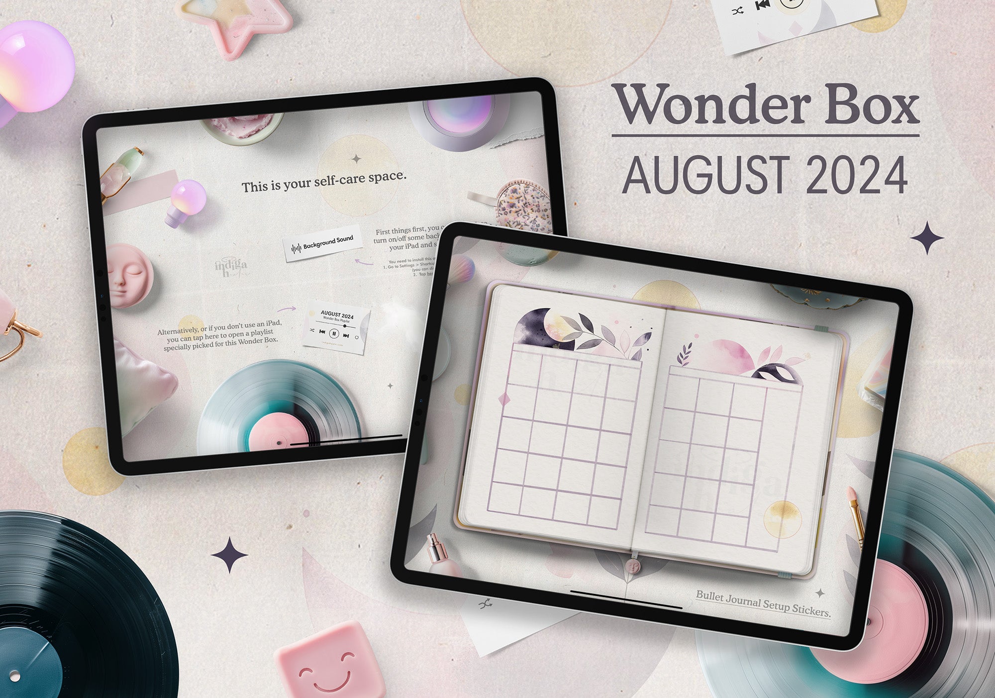 Wonder Box is our monthly subscription box with all the tools necessary to setup your digital (bullet) journal for the month in kinda magical way.