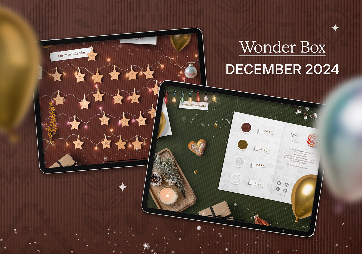 Wonder Box is our monthly subscription box with all the tools necessary to setup your digital (bullet) journal for the month in kinda magical way.