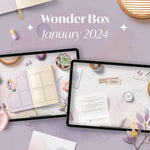 Wonder Box is our monthly subscription box with all the tools necessary to setup your digital (bullet) journal for the month in kinda magical way.