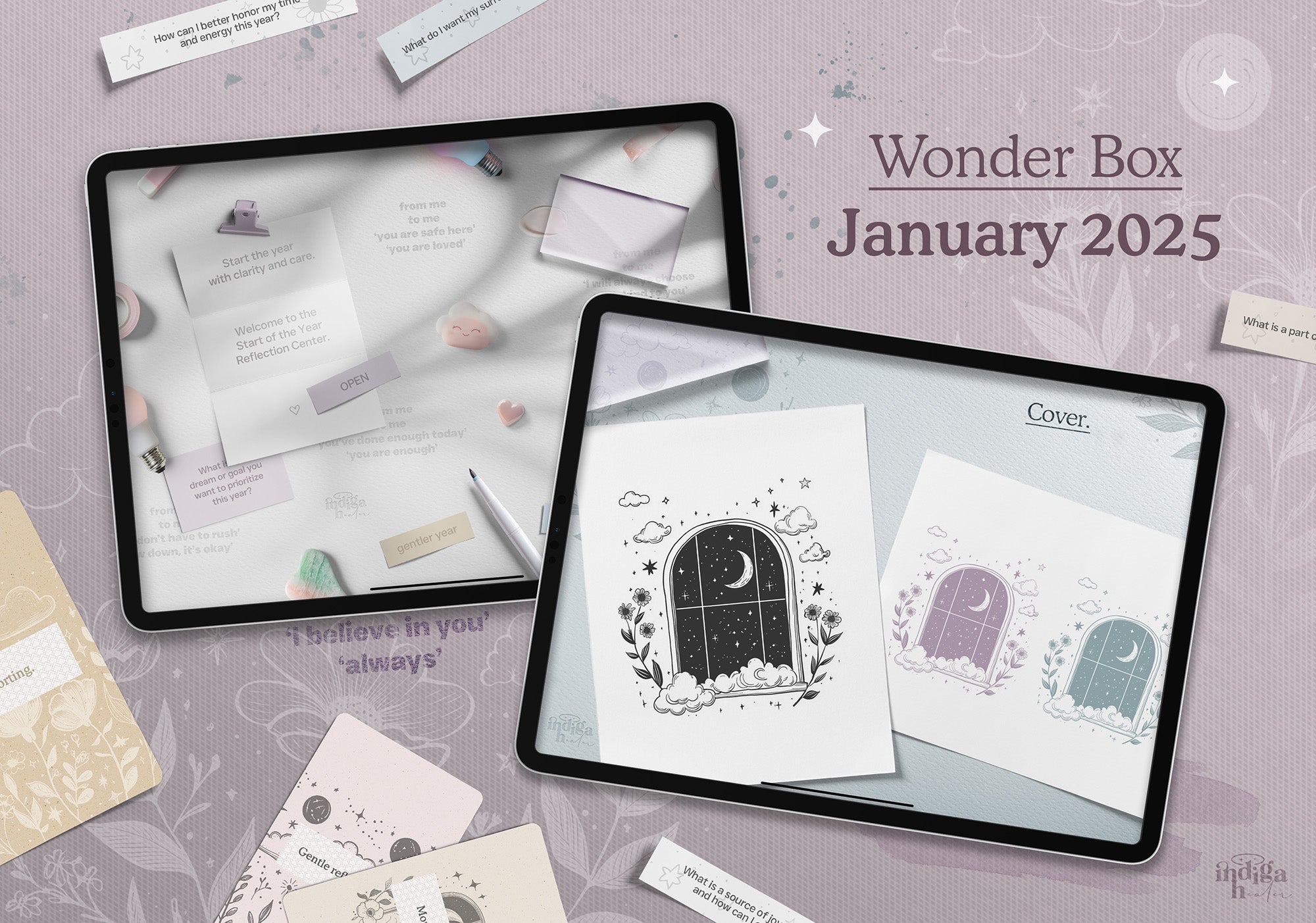 Wonder Box is our monthly subscription box with all the tools necessary to setup your digital (bullet) journal for the month in kinda magical way.