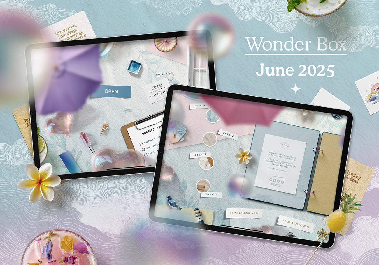 Wonder Box is our monthly subscription box with all the tools necessary to setup your digital (bullet) journal for the month in kinda magical way.